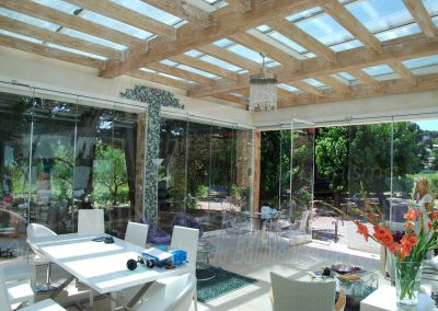 Extension Veranda – Cogolin Création d’une véranda avec panneaux de verre articulés, traités coolight(anti UV) et structure en pierres de BormesCoût de l’opération : 110 000 € TTC – Cogolin – Château de Trémouriès Retour
